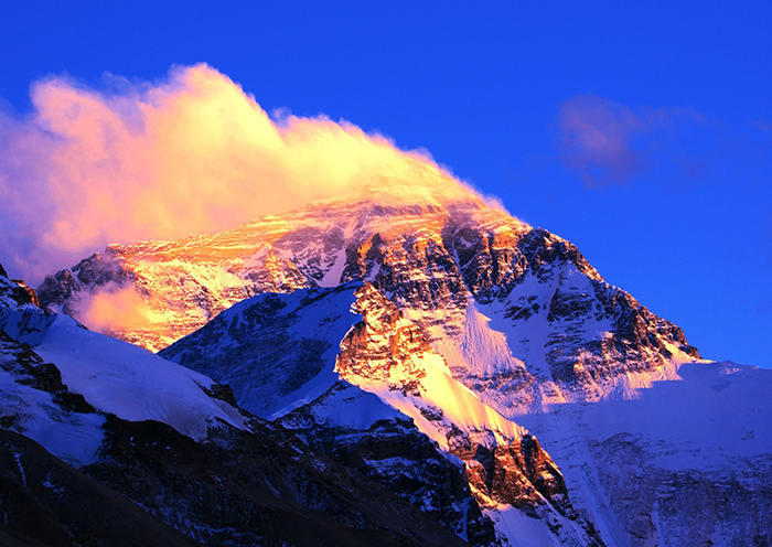 Der Mount Everest, in der tibetischen Sprache auch als Mount Quomolangma (dritte tibetische Göttin) bezeichnet, ist der höchste Berg der Welt. Mit einer Höhe von 8.848 Metern (29.029 Fuß) ist er auch als dritter Pol der Welt bekannt. Gelegen an der Grenze zwischen China und Nepal, der zentralen Region des Himalaya-Gebirges, hat der Nordkamm (in China) des Everest in Tibet einen leichteren Hang als der Südkamm in Nepal, daher wird die Nordkammroute eher von Bergsteigern gewählt. Der Hauptteil des Mount Everest ist wie eine riesige Pyramide geformt, zusammen mit einem großen Gletscher, der sich über 26 km erstreckt. Dieser bildet eine erstaunliche Bergwelt, zusammen mit anderen Gipfeln herum. Der ganzjährig mit einer Schneedecke bedeckte Gipfel ist das Traumland der Abenteurer unter den Bergsteigern. Mittlerweile ist es auch ein Lebensziel für Touristen, den Eisberg vom Everest Base Camp (EBC) aus zu bestaunen.